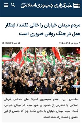 نماینده مردم سلماس در مجلس شورای اسلامی: مردم میدان خیابان را خالی نکنند/ ابتکار عمل در جنگ روانی ضروری است- یکشنبه 9 فروردین 1405 ساعت 00:10