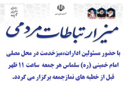 میزخدمت در محل مصلی امام خمینی (ره) سلماس مورخ 2 دی ماه از ساعت 11 ظهر- قبل از خطبه های نمازجمعه برگزار می شود.