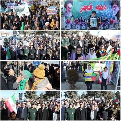 حضور بخشدار محترم بخش مرکزی به همراه مسئولین محترم شهر تازه شهر در مراسم راهپیمایی 22 بهمن در کنار آحاد مختلف مردم این شهر