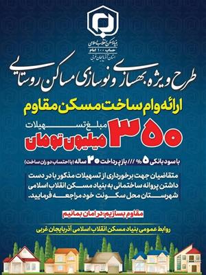 ارائه وام 350 میلیون تومانی در طرح ویژه بهسازی و نوسازی مساکن روستایی