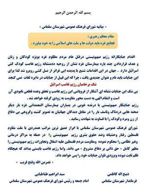 « بیانیه شورای فرهنگ عمومی شهرستان سلماس »- چهارشنبه 26 مهر 1402 ساعت 12:50