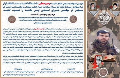 متن پیام مشترک فرماندار و امام جمعه محترم و نماینده شریف شهرستان سلماس در پی شهادات بسیجی مدافع امنیت