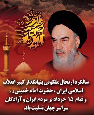 سالگرد رحلت بنیانگذار جمهوری اسلامی ایران، رهبر کبیر انقلاب حضرت امام خمینی (ره) و قیام 15 خرداد تسلیت باد.