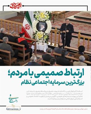 ارتباط صمیمی با مردم؛ بزرگترین سرمایه اجتماعی نظام- جمعه 21 فروردین 1405 ساعت 09:38