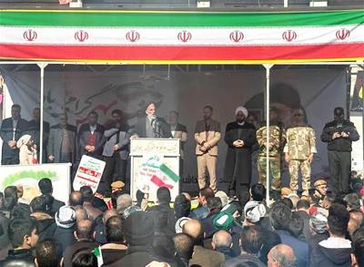 حضور بخشدار محترم بخش مرکزی به همراه مسئولین محترم شهر تازه شهر در مراسم راهپیمایی 22 بهمن در کنار آحاد مختلف مردم این شهر