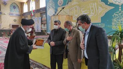 نماینده مردم در مجلس شورای اسلامی و شهردار سلماس به نمایندگی از جمعی از نمازگزاران مصلی امام خمینی (ره) سلماس که لوح تقدیری آماده کرده بودند