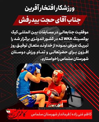 متن تبریک فرماندار بمناسبت کسب مقام توسط جوان ورزشکار سلماسی