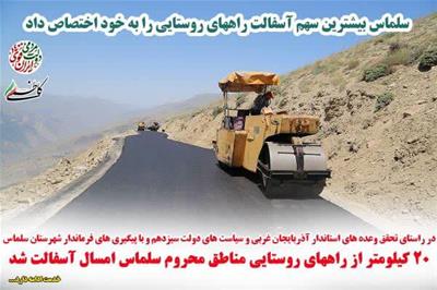سلماس بیشترین سهم آسفالت راههای روستایی را به خود اختصاص داد