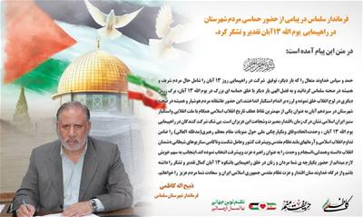 متن پیام تشکر فرماندار از حضور مردم شهرستان سلماس در راهپیمایی یوم الله 13 آبان