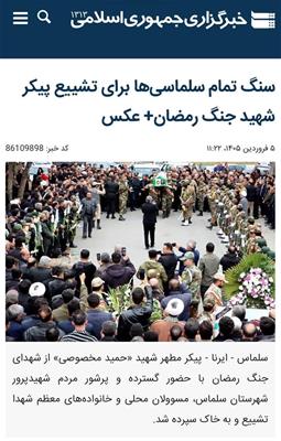 سنگ تمام سلماسی ها برای تشییع پیکر شهید جنگ رمضان